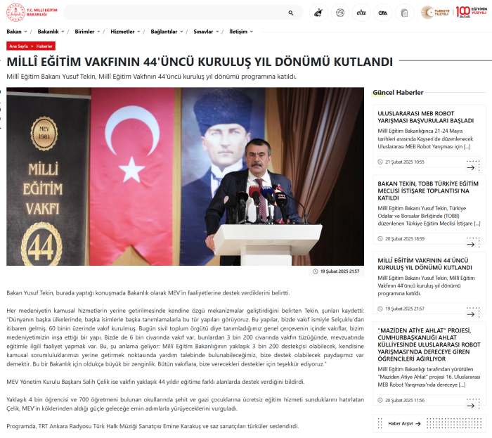 Milli Eğitim Vakfının 44. Yıl Kutlama Etkinliği Kapsamında Milli Eğitim Bakanı Sayın Yusuf Tekin'in Konuşmaları.