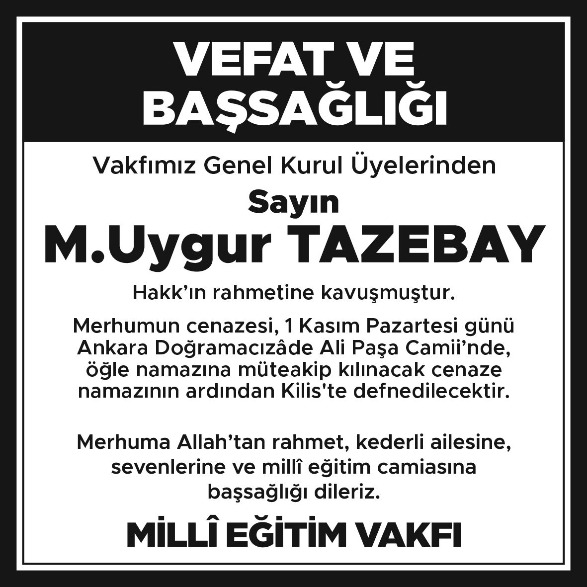 M.Uygur Tazebay'ı Kaybettik